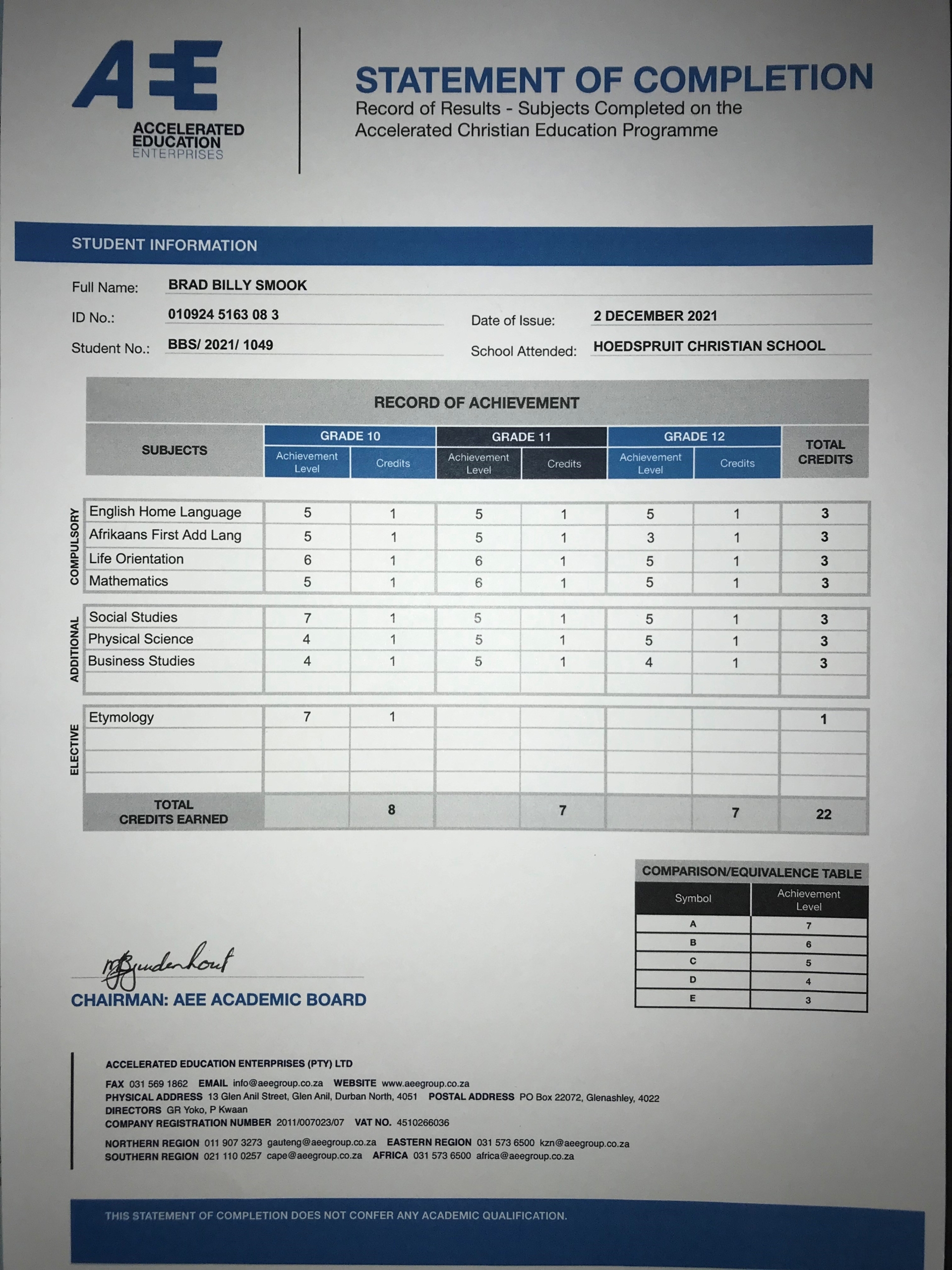 - Duel enrolment with Lighthouse Christian Academy in the US.